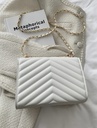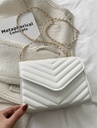 Chevron Detail Chain Square Bag, Minimalist Flap Shoulder Bag, Fashion Crossbody Purse For Women - White